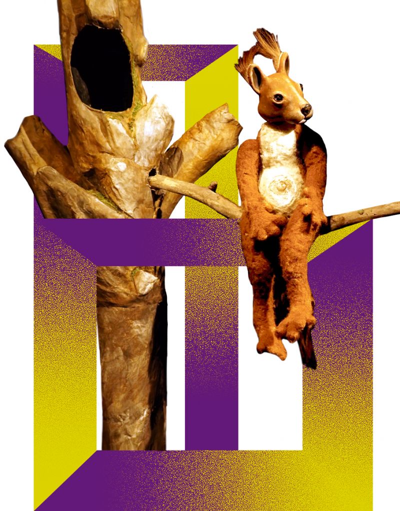 Auf der Bühne ein leichter Nebel. Als er sich lichtet, gibt er den Blick auf einen Wald frei. Der Wald lebt, bewegt sich unmerklich. Seine Bewohner*innen laufen, kriechen, schleichen, fliegen und flattern vorüber. Eine Marionette erscheint. Was wird sich an diesem Tag abspielen? Ist der Mensch an seinem richtigen Platz? Kann er mit den anderen Lebewesen zusammenleben? Befinden wir uns in der Realität?