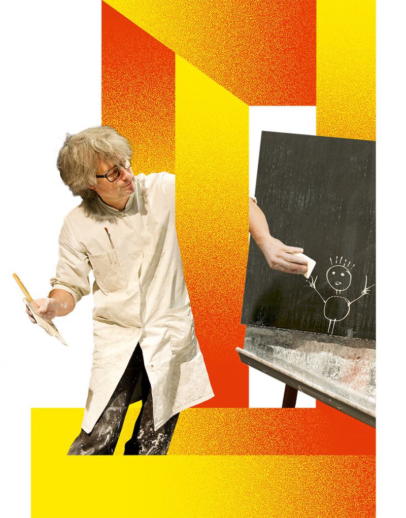 «Ich brauch mehr Platz», sagt das Weiss. «Nur zu», freut sich das Schwarz, «dann kann ich darauf malen.» «Aber übertreib es nicht», ruft Weiss, «sonst wirst du dich noch wundern.» Und tatsächlich: Ausgerüstet mit Pinsel und Spachtel stürzen sich die beiden Gegenspieler in ein Schöpfungsabenteuer, bei dem kein Fleck mehr trocken bleibt: Ein verblüffendes Spiel mit Hell und Dunkel, Vorne und Hinten, Geben und Nehmen. Eine schwarze Tafel und ein Eimer weisser Farbe – mehr braucht es nicht für ein beherztes Malvergnügen und das Erlebnis, wie aus Gegensätzen die Welt entsteht.